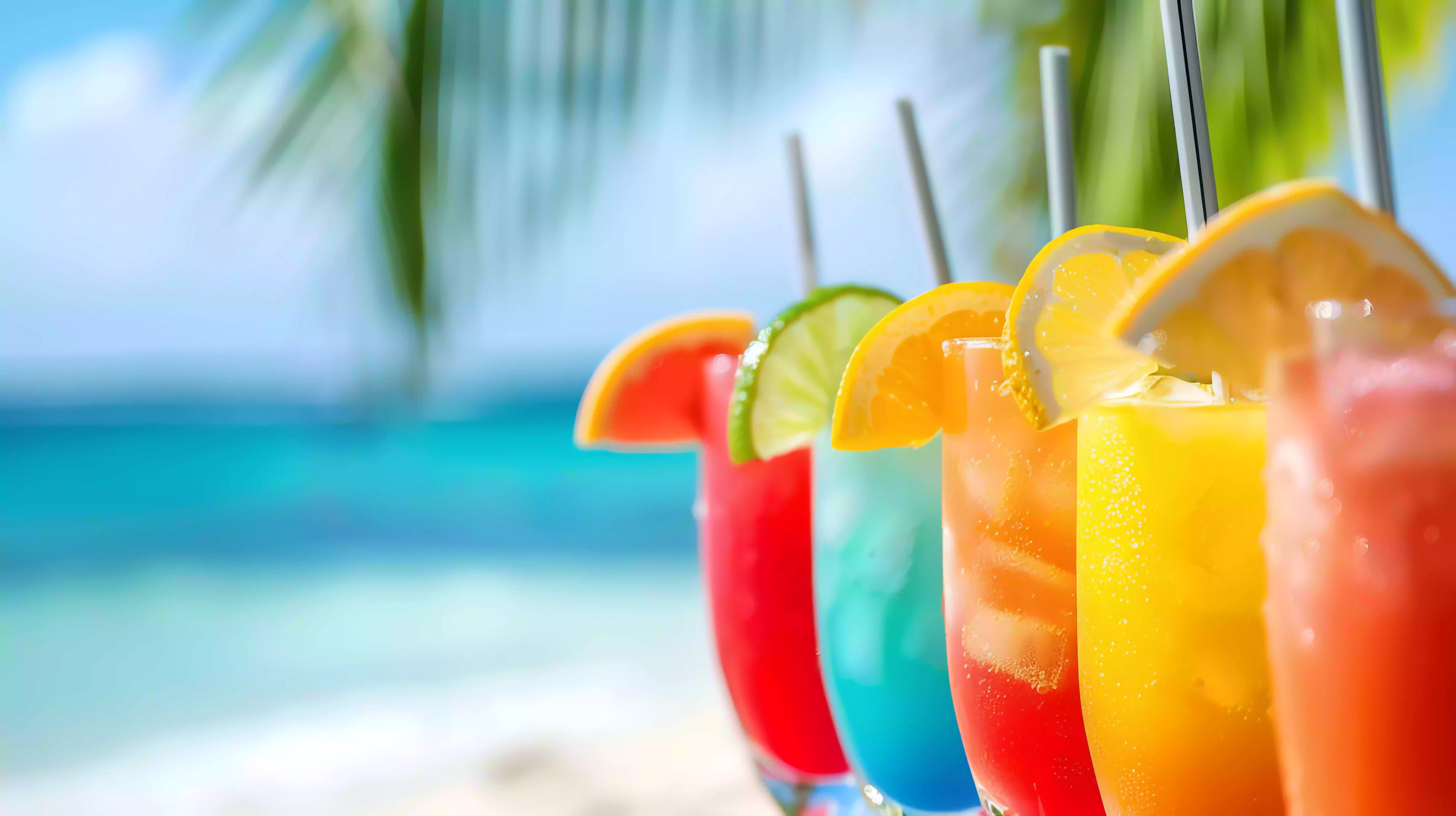 Добавьте большие искусственные пальмы, раскрасьте коктейльные зонтики яркими узорами, украсьте столы свечами в стеклянных банках с песком и ракушками. Для полного погружения можно включить фоновый шум океана.