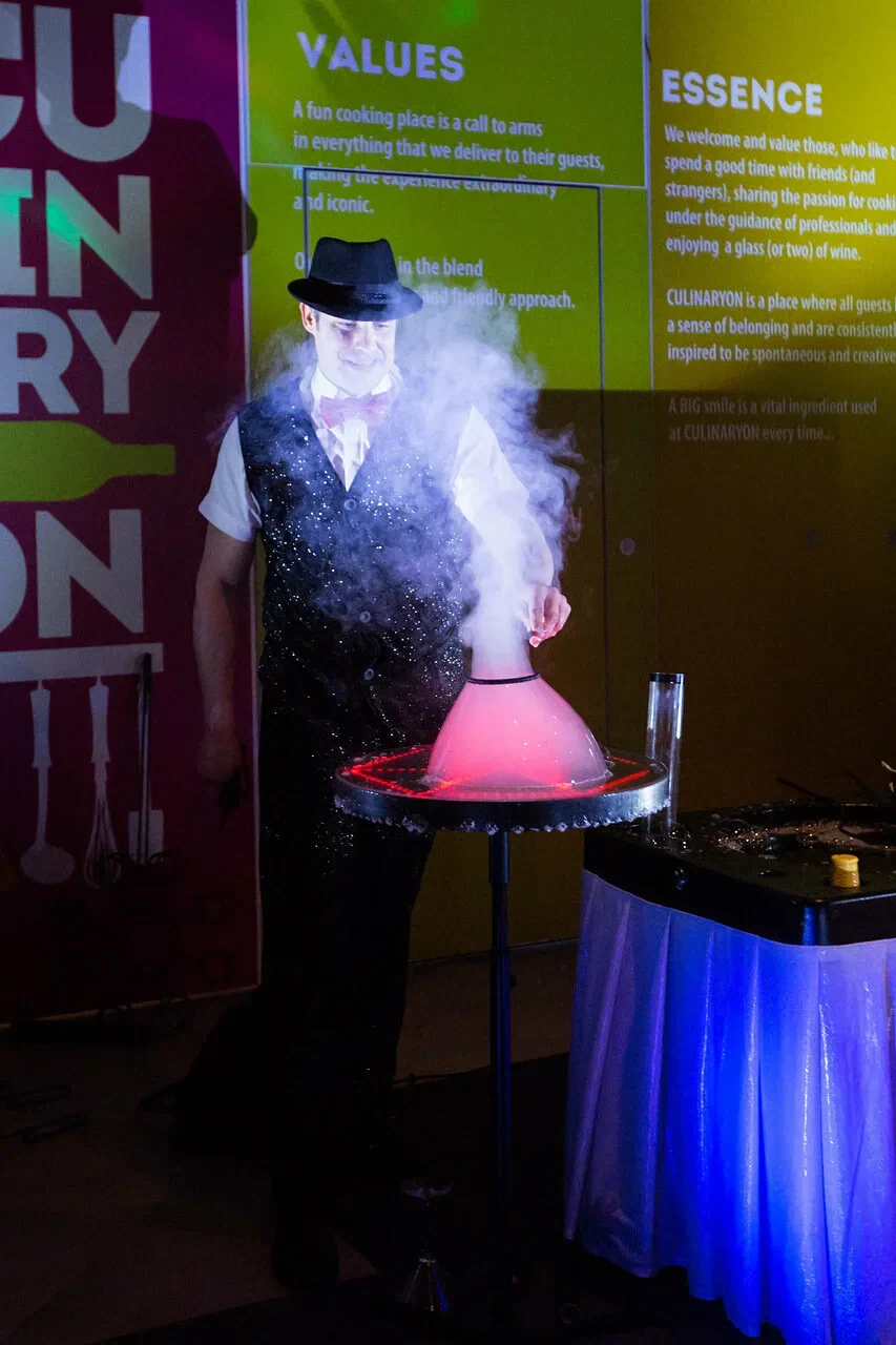 3. Развлекательная часть с основным действом. Кульминация вечера — длится час, полтора. Если этот блок длинный, уместен антракт со сменой деятельности.