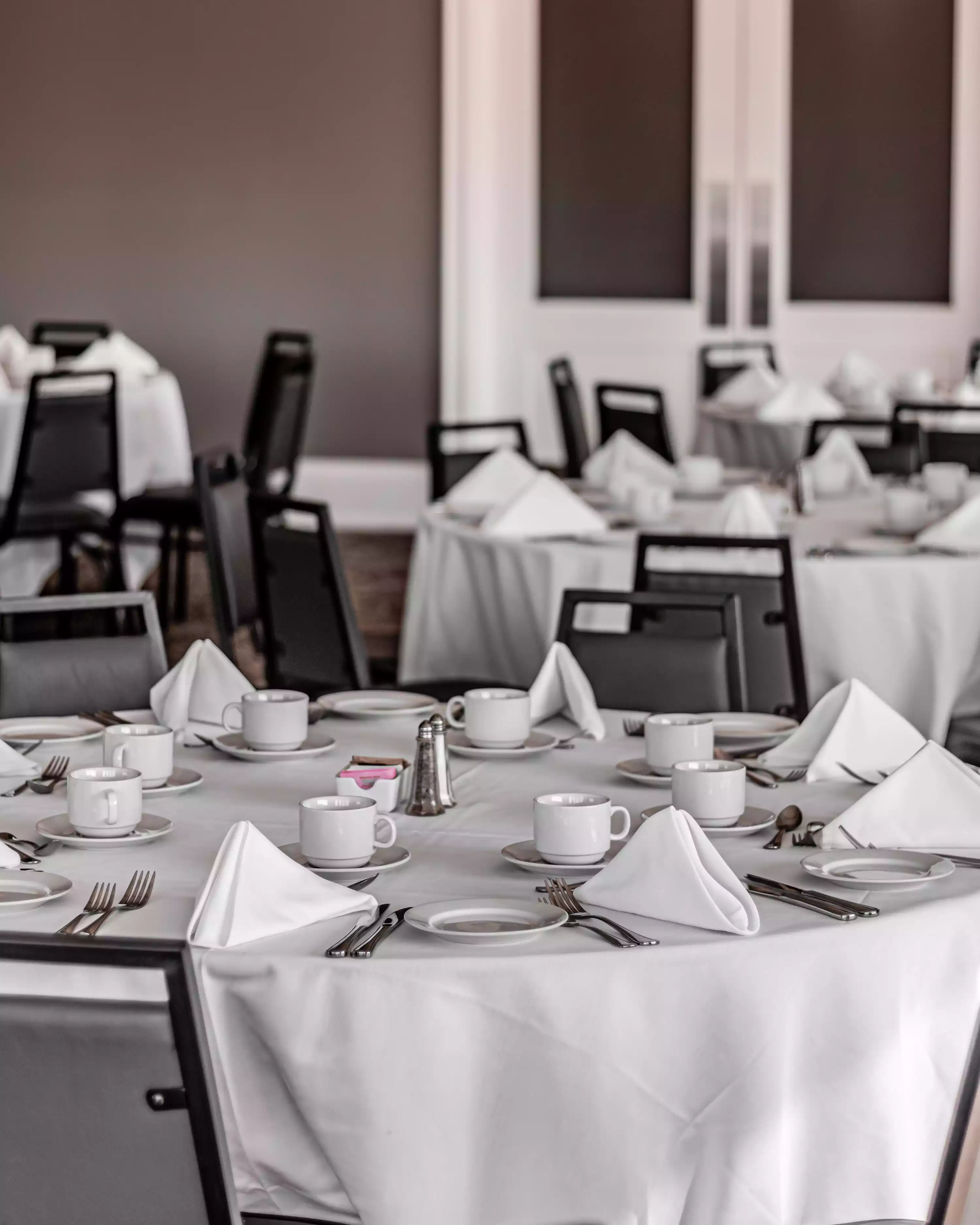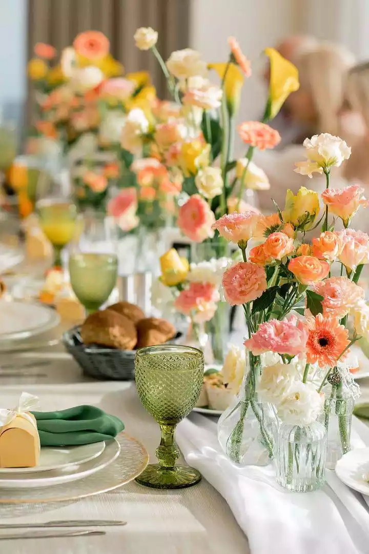Цвет скатерти для банкета должен гармонировать с посудой. К примеру, полотно малахитового или тёмно-бронзового оттенка отлично оттеняет хрусталь или фарфор. Выбор скатерти ярких цветов должен гармонировать с дополнительным декором, общим оформлением стола.